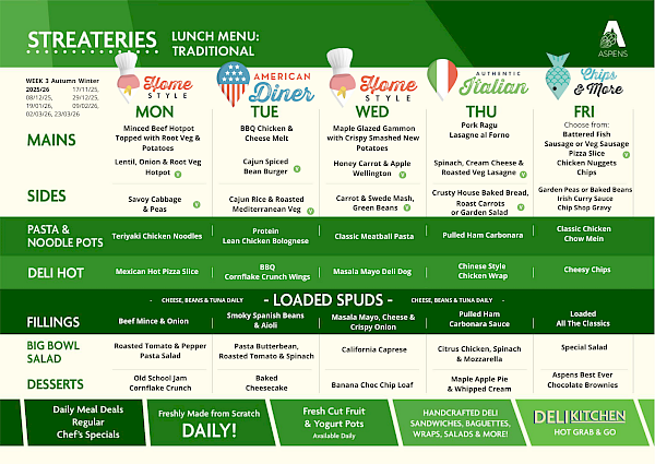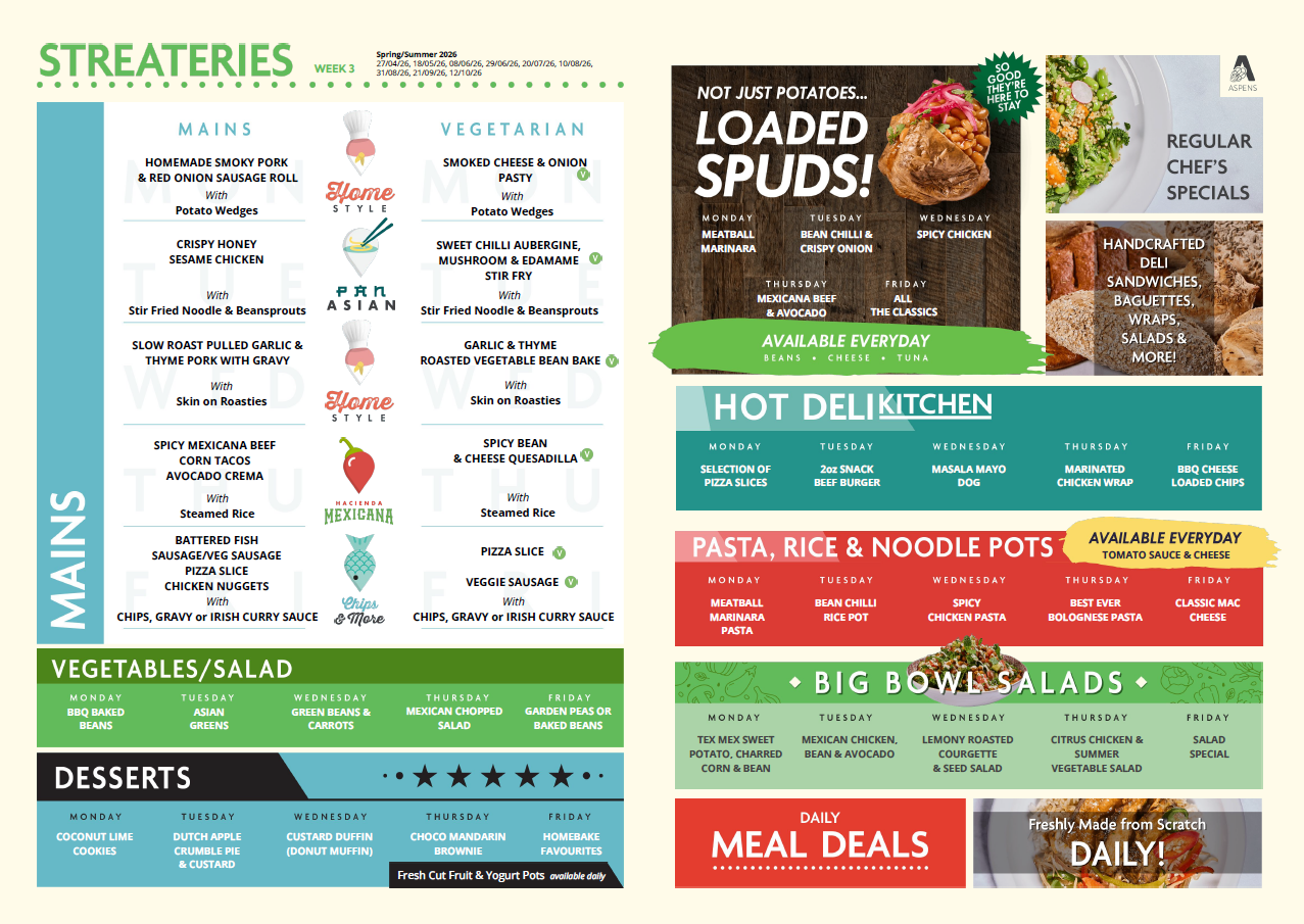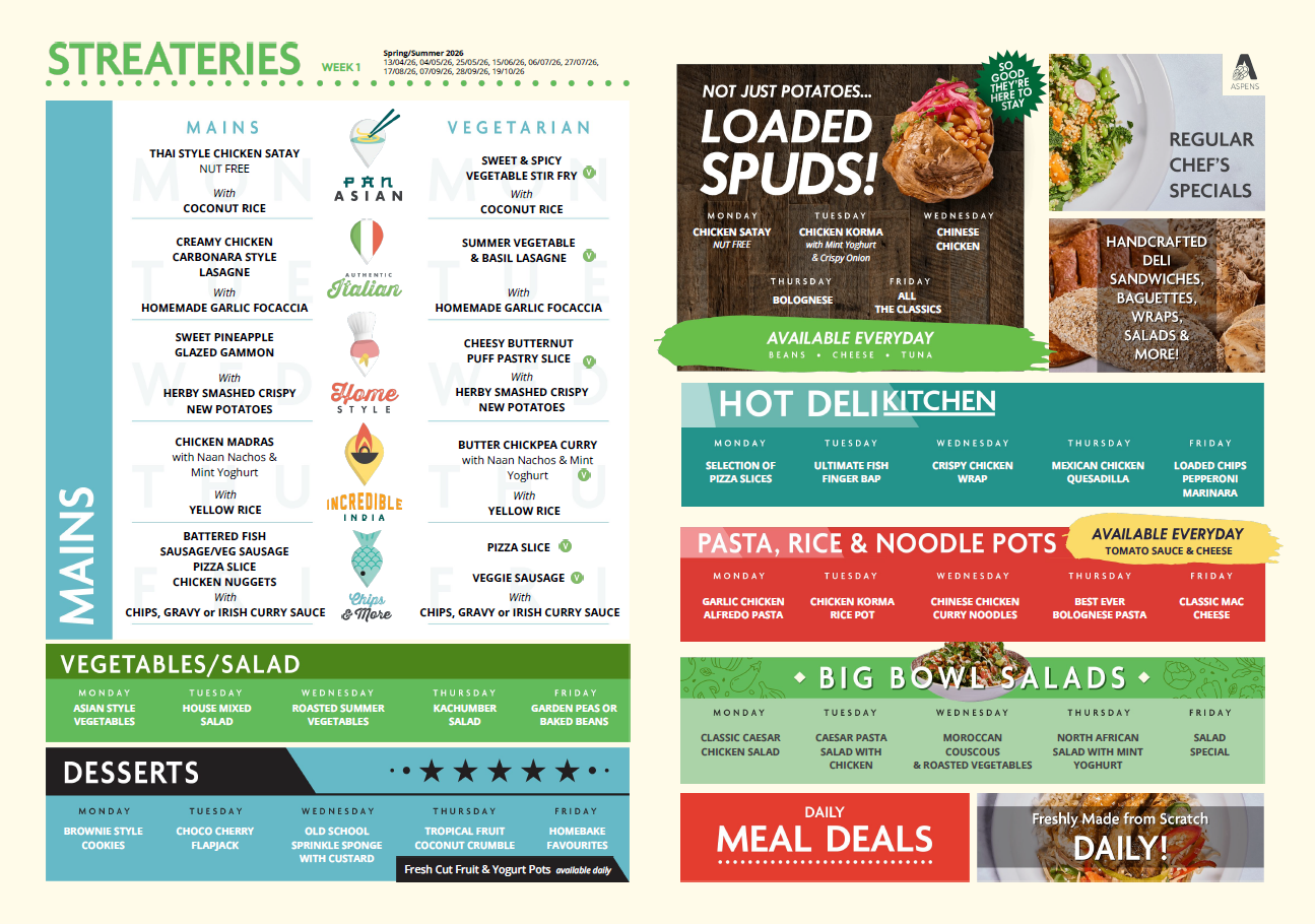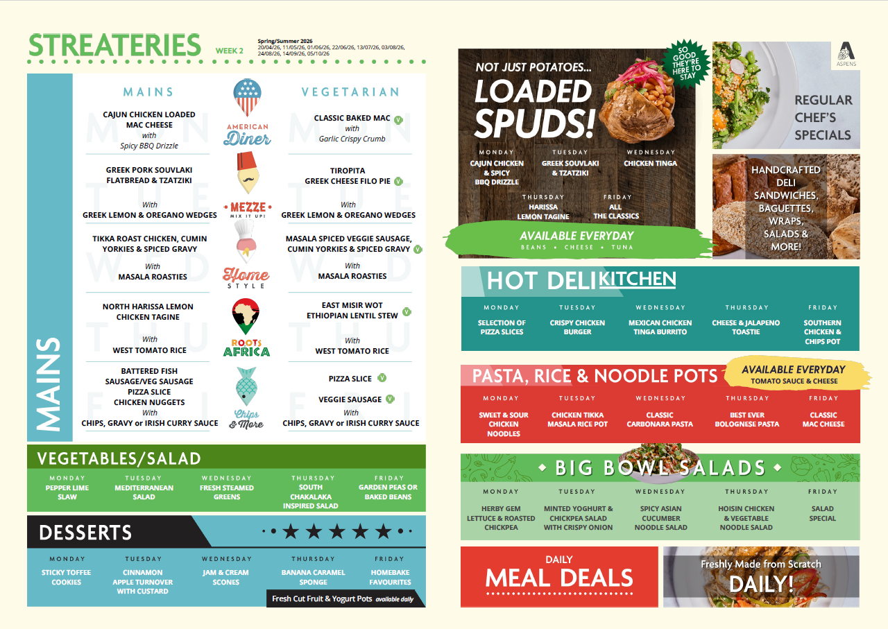 Lunchtimes at The Hub are never boring! Aspens host regular theme days featuring flavours from around the world, from Asian street food and Italian favourites to American classics.